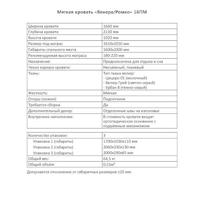 Кровать Ромео ПМ (Аквилон) продается в интернет-магазине v-permi-mebel.ru по цене 28 306 руб. Есть доставка по Перми и Пермскому краю. Возможность подъема на этаж и сборки уточняйте у менеджера по телефону 8(800)505-27-11.