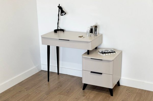 Благодаря своему дизайну трюмо «Катрин» легко впишется в любой интерьер и гармонично сочетается с другими модулями спальни «Катрин». Выкатные ящики предоставляют достаточно места для хранения различных предметов, а возможность использования трюмо в качестве письменного стола делает его универсальным элементом мебели.