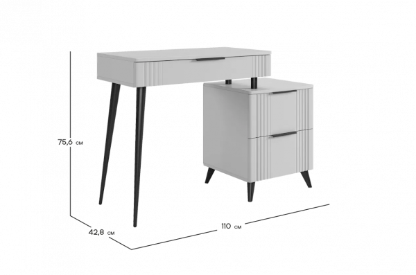 Представляем вам элегантный и функциональный туалетный столик «Катрин»! Этот предмет мебели станет стильным дополнением к вашей спальне и предоставит удобное место для хранения вещей, а также может использоваться как письменный стол.